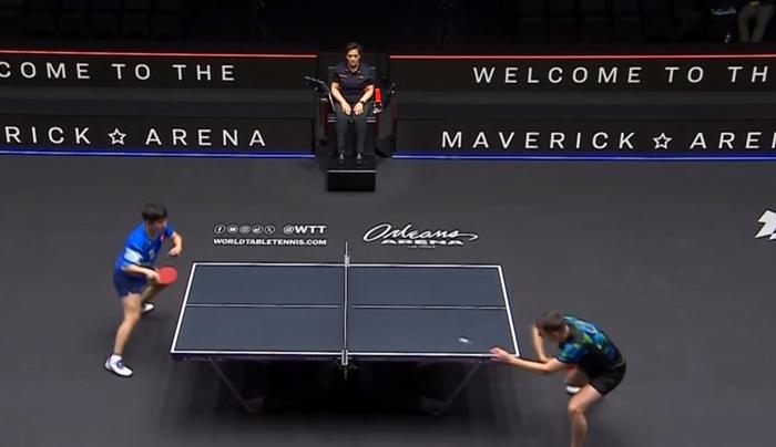 第三局林诗栋进行了变化,不要求质量,加旋转,开局5-2领先。即便局中被对手紧咬,局末还是可以通过旋转的变化去限制对手,扩大分差后,11-6拿下第三局。